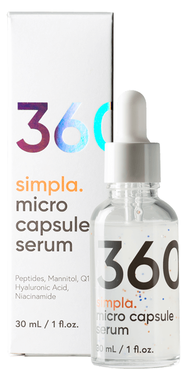 La razón principal del envejecimiento es la falta de colágeno y elastina. Simpla 360 estimula la síntesis de proteínas estructurales y contribuye al rejuvenecimiento natural de la piel a nivel molecular.